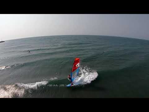 這個點是位於線西肉粽角往南的 位置 。 先前因為東北季風時中部玩家找大平水區域,但是肉粽角釣客多又上下海灘必須爬一大段防坡堤。因次在西南風起的日子,便找一天沿著南邊的海堤尋找是否有方便的下水位置而找到。 這段海埔新生地從肉粽角到八支水劍,全程有數個小凸堤,凸堤邊邊都會形成小沙灘,但是唯有第18號風機這一個留有一個小缺口可以搬裝備進去。其他都要手腳並用的攀爬,因此雖然尾端八支水劍那裡在南部有能量進來時會有不錯的順浪,但是就連衝浪的想帶小板下去都算艱難。 缺口走進去面向凸堤的左邊(南面海域)屬於受風面,沙灘也比較長,新手建議從這裡下水比較不會沒有動力。但是還是要注意下風邊的短提。所以出去的前50公尺建議就要放面速度來取得頂風角度,遠離堤防。 右邊的沙灘比較短,前端20-30公尺受堤防遮蔽,所以風會不穩,但是大裝備可以輕鬆站出去。一旦出去就可以飆了。不過下北邊沙灘建議還是以頂風技巧熟練的老手為主。 出去到很遠的位置會有沙丘,漲潮時會被淹沒而只看到小碎浪的區域,對於尾舵比較長的Freeride裝備,要小心卡到沙而過肩摔。不過這區塊還算很遠,很容易辨識就是。 另一點是,雖然是沙灘,但是還是建議穿膠鞋下水玩,因為沙灘上有時還是有貝類的碎殼可能刺腳。二來是如果真的頂風頂不回沙灘,必須走過消坡塊時,也比較安心。